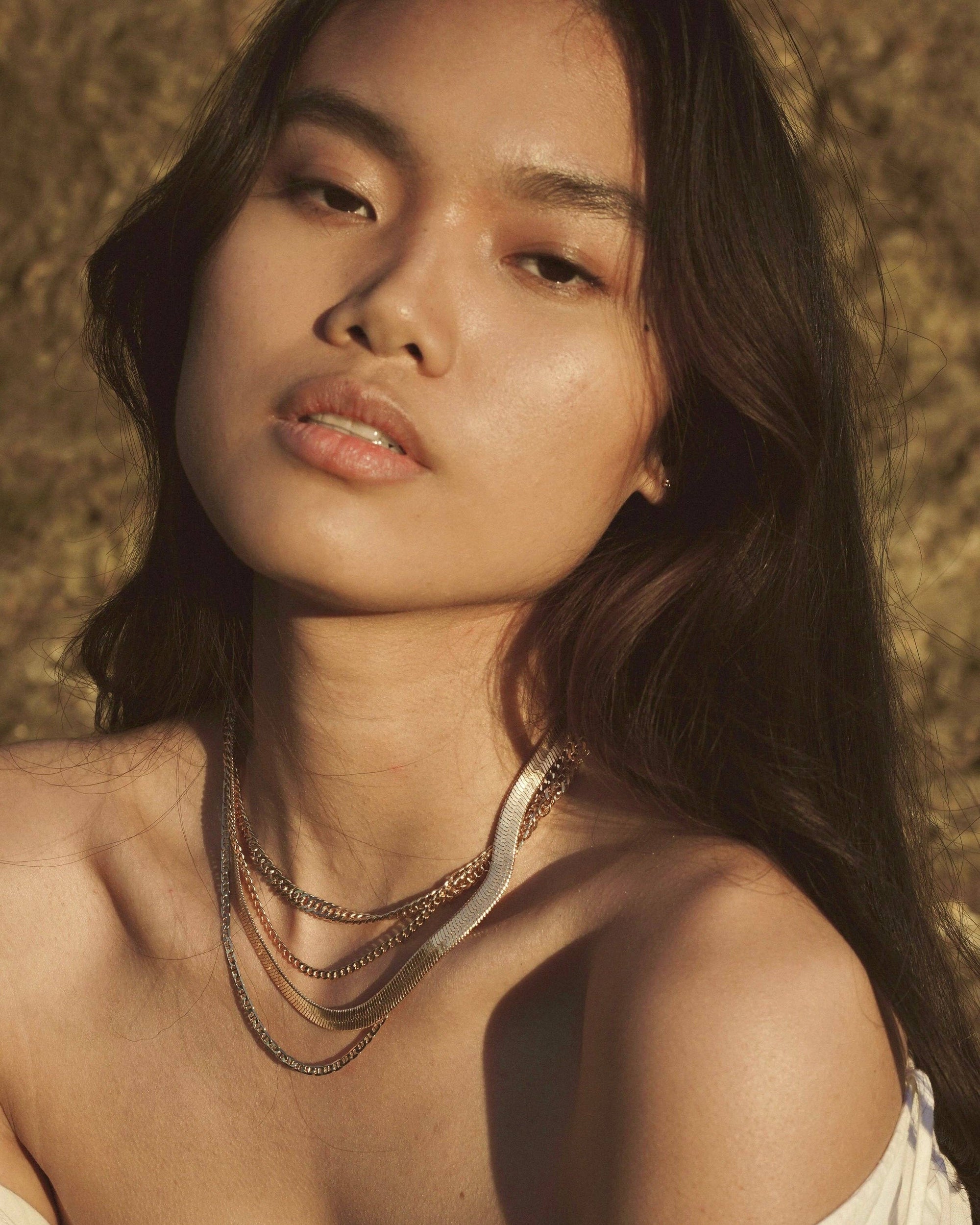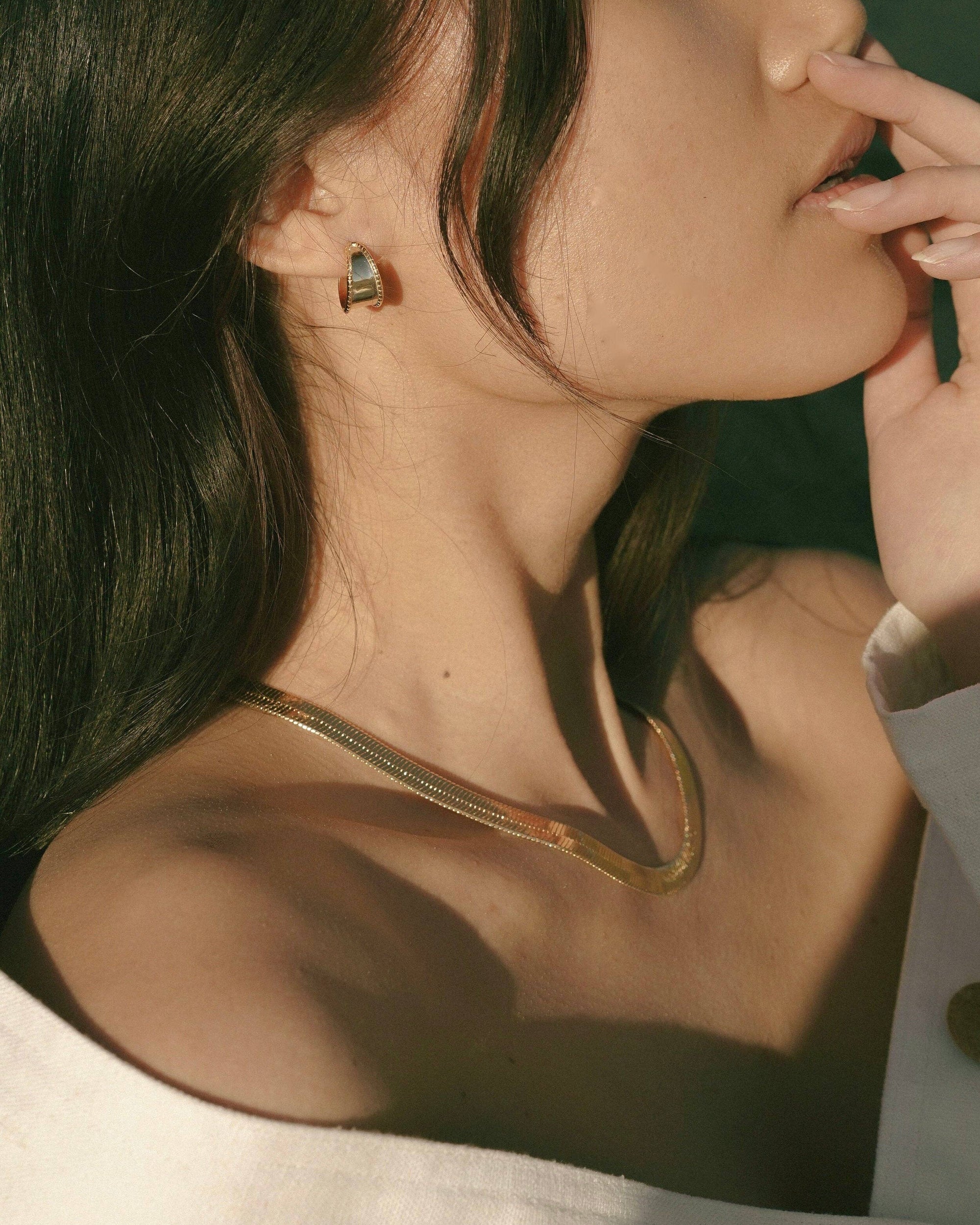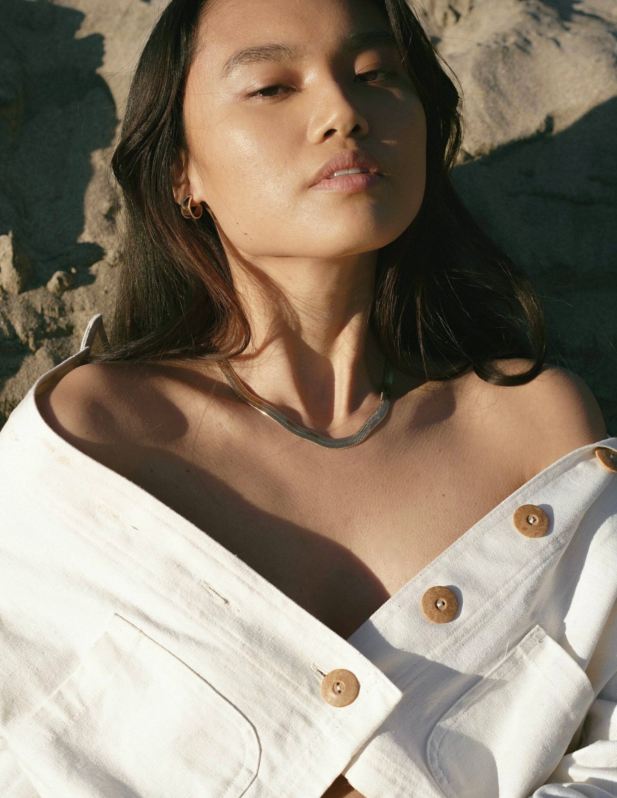 Fortune favors the bold. Timeless and modern, this necklace looks stunning worn alone or layered with other pieces - it glides and dips along to the collarbone as you move - like liquid gold.