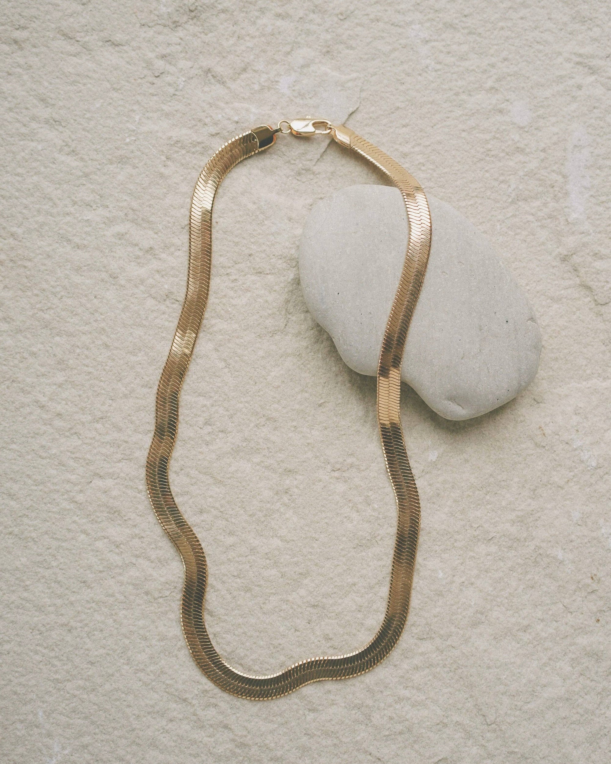 This piece is delicate and should be stored in a flat place and treated with extra care to avoid potential kinking. Options: * 18kt gold filled * Sterling Silver Details: * 18” in length * 5mm width * Lobster Clasp * Made in the USA