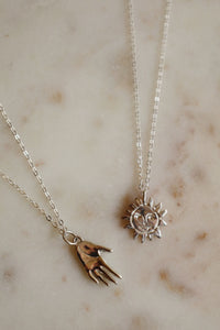 Meet the Silver Sun Talisman Necklace Pendant, a handmade, artisan-crafted amulet designed to bring a divine radiance and a source of positivity. Carved by hand in wax by Jessica, the intricate sun face pendant is carefully crafted from recycled sterling silver to protect and inspire.
