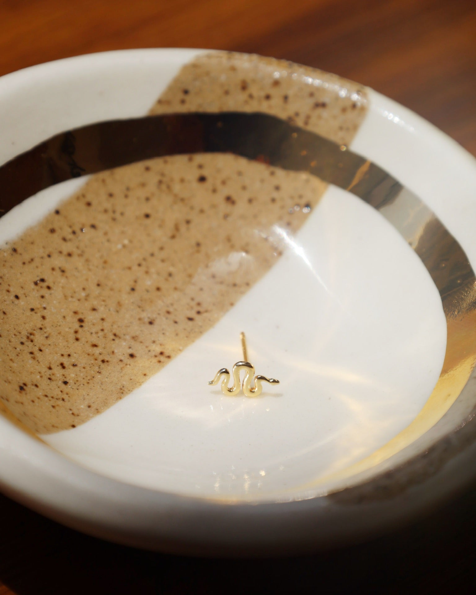 Introducing our exquisite 14k gold mini serpent studs, a captivating addition to your jewelry collection. The serpent symbolizes wisdom, transformation, and rebirth, making these earrings a perfect choice for those seeking a unique and meaningful accessory.