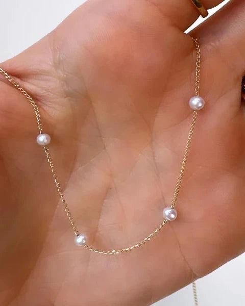 Expertly crafted from solid 14kt gold, this minimalist pearl necklace showcases a beautiful natural pearl. With a 16'' length and 2'' extender, it's the perfect dainty accessory for everyday wear. Elevate any outfit with this elegant and timeless piece.
