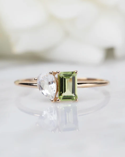 14kt gold, 6x4mm peridot, 6x4mm white topaz