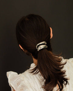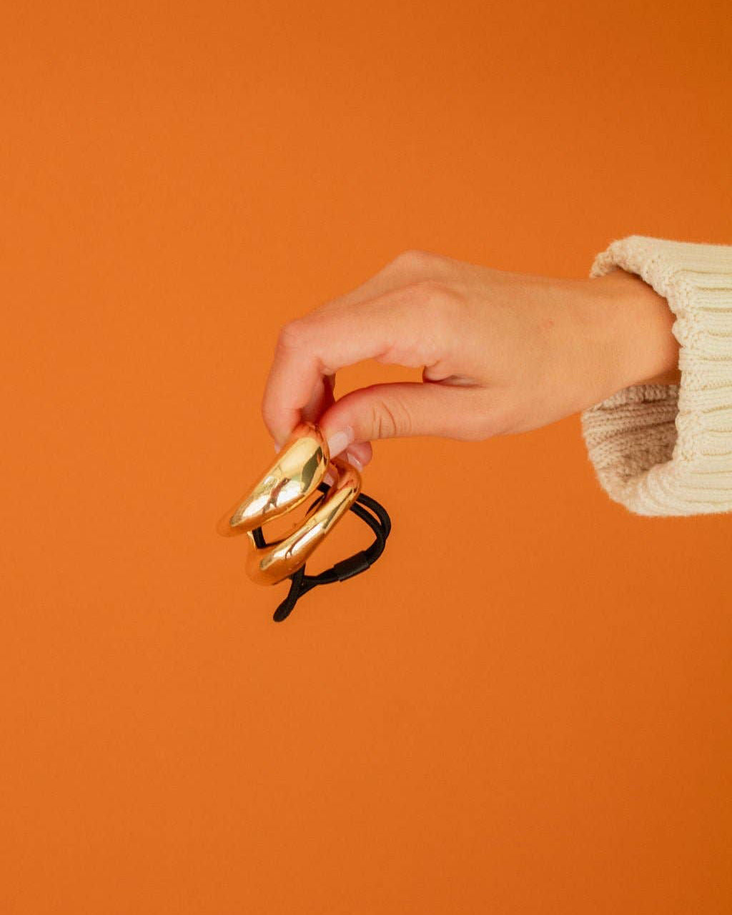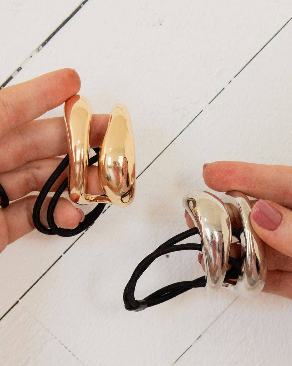 This hair tie will be the best addition to your closet! Made with a black elastic and a gold or silver metal brooch; It will hold your hair better than your average hair tie, and give it the cutest touch while still feeling so simple.