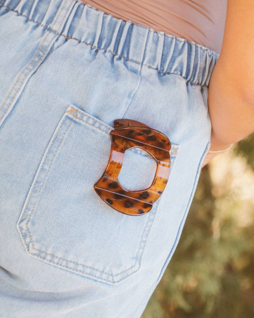 This leopard curved claw clip is so adorable, and is the absolute perfect color/pattern for this time of year! The best way to elevate your updo for the day. This is a medium size claw clip measuring at 4 inches.