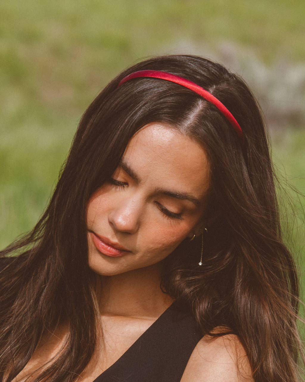 This headband is to die for! Andi is known for its unique and beautiful products and nothing beats our headbands. This headband is a silky ruby red almost purpley that is so sleek and makes for the perfect subtle 4th of July accessory.