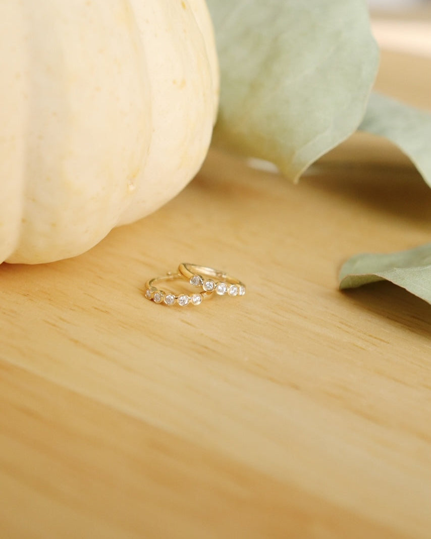 Modern multiple diamond bezel set huggie earrings. 14K yellow solid gold and uber chic. Wear them day or night, up or down.