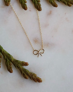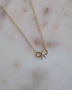 Adorable and all handmade and designed by us in our studio in California, the Itsy Bitsy Bow necklace is available in solid yellow gold 14K.