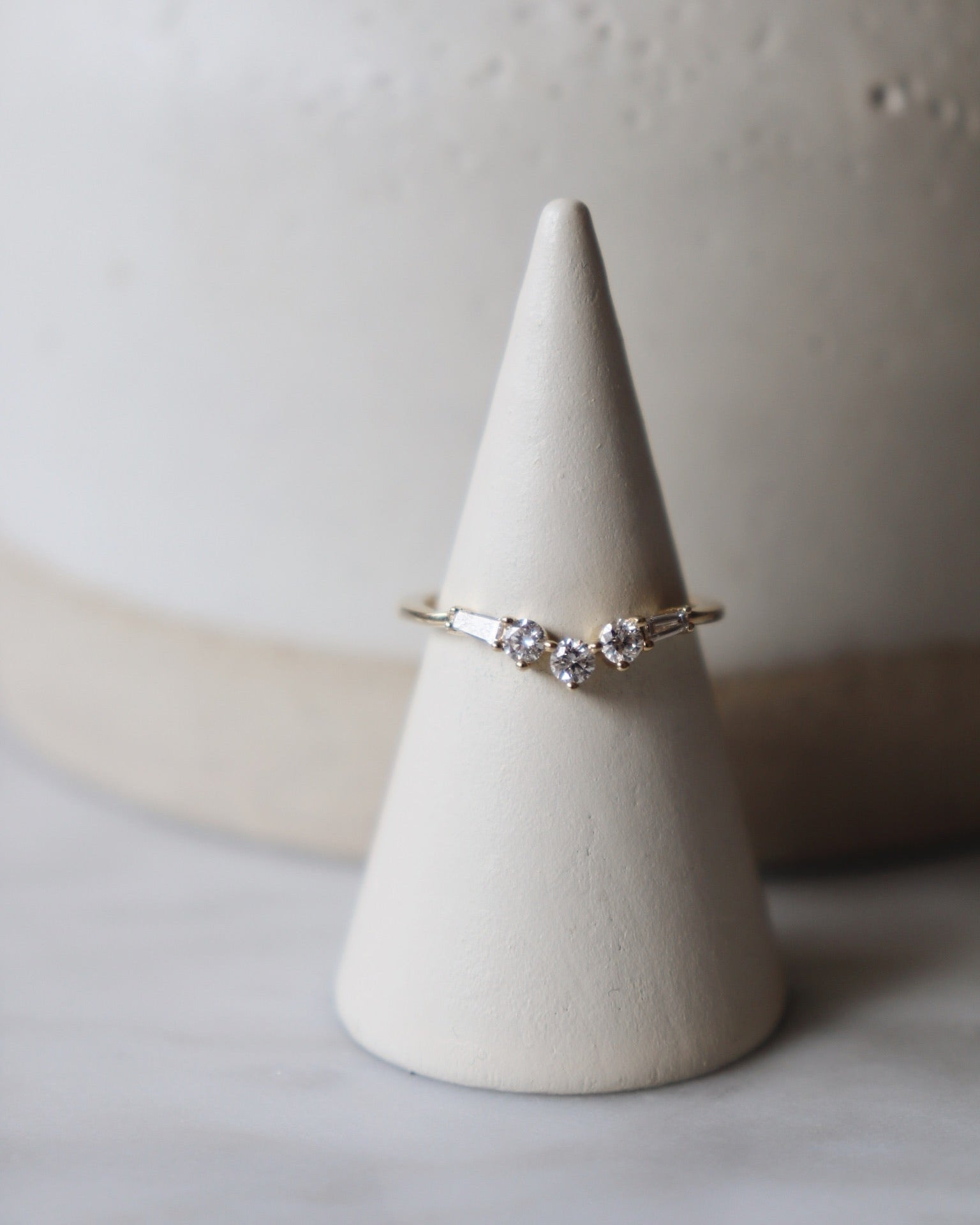 Perfectly spread! This contour band design incorporates tapered baguettes and round brilliant cuts to complement a variety of engagement rings.
