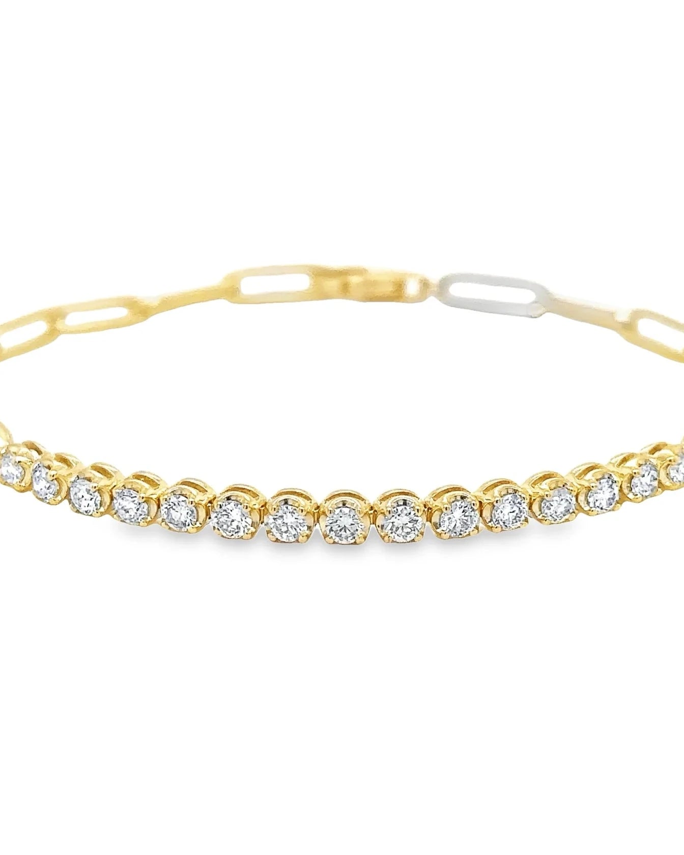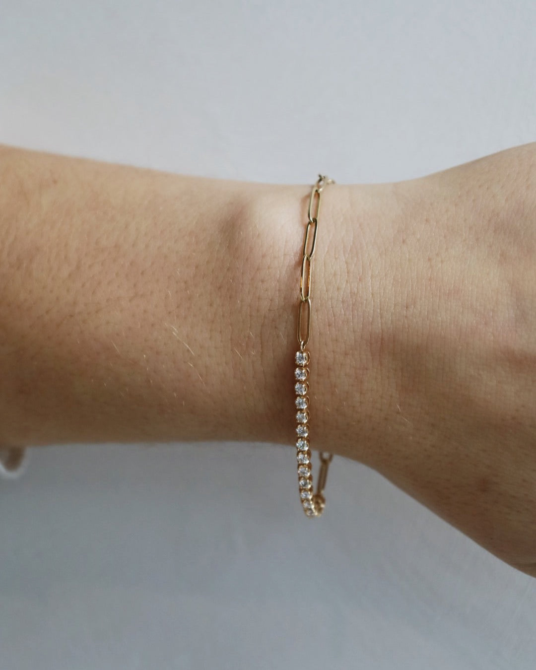 Upgrade your jewelry collection with our Paperclip and Diamond Tennis Bracelet. This modern take on a classic is crafted with solid 14kt gold and features sparkling diamonds with a G-H color. DIAMOND WT. APPROX. 0.55 CT.