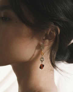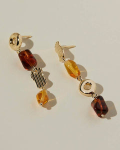 The ellis earrings feature everything we love about this collection in one, easily wearable style. You get movement, translucent warm glass, asymmetry, and handmade modern charms in one eye-catching earring.