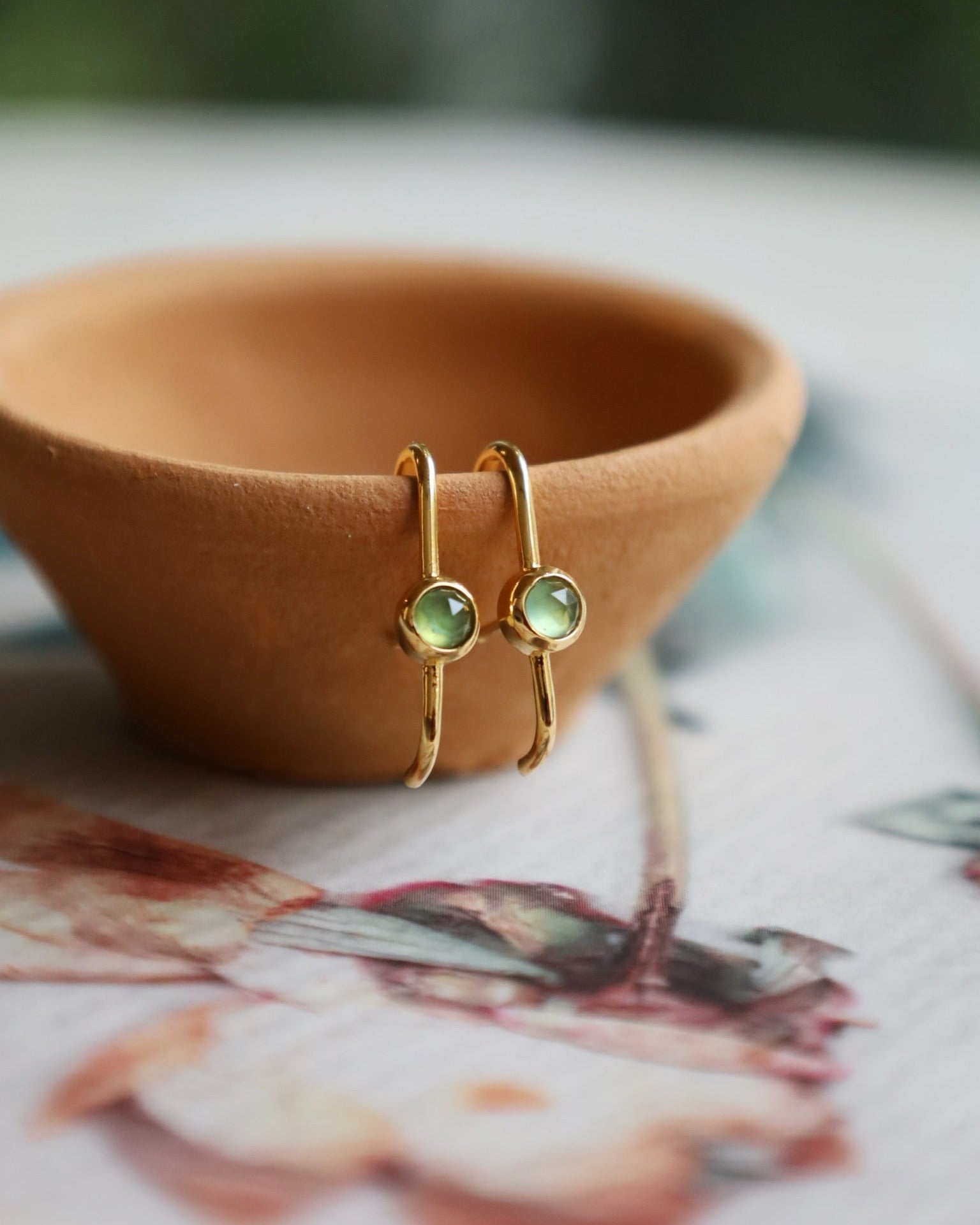 Gold plated brass earrings, ear posts are gold plated sterling silver 3mm stone 20mm height