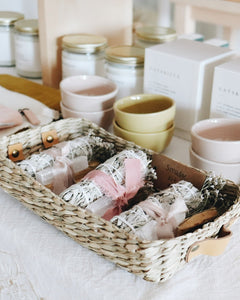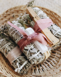 Our smudge kite comes with Sage, Selenite, and Palo Santo. Smudging is a practice designed to cleanse and purify not only surroundings but also the soul.