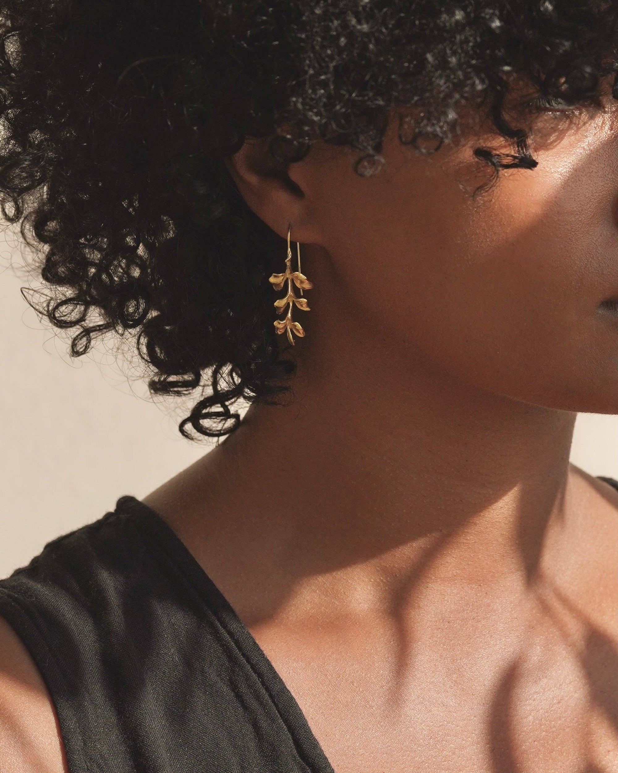 Carved botanical drop earrings inspired by warm spring days. Originally designed to resemble a California Lupin wildflower, this pair can represent whatever flower or vine comes to mind ~ a light weight unique style that will become an instant elegant favorite.