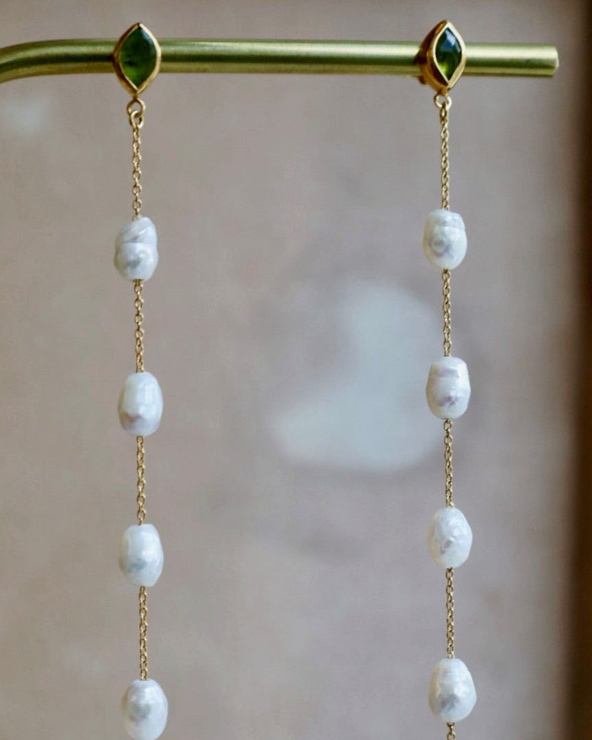 Gwen Pearl Peridot Tiered Earrings