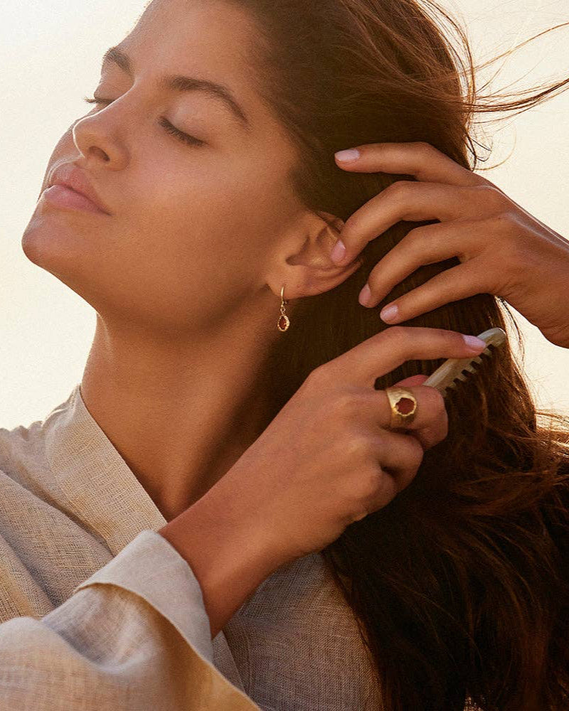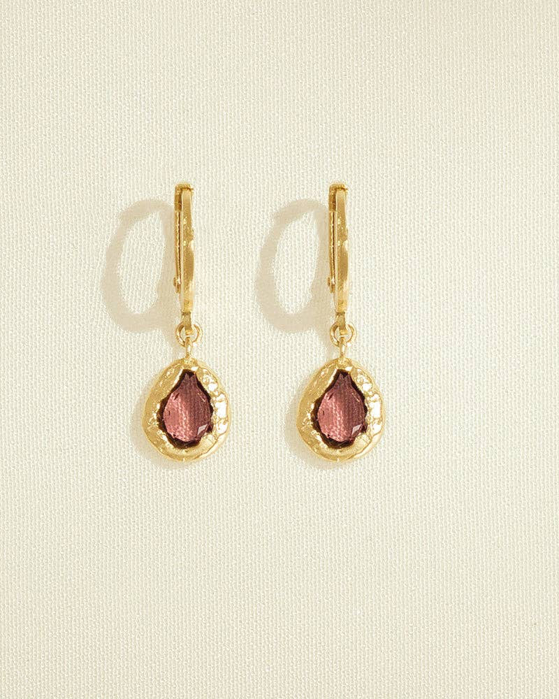 Set in a textured gold nest, the dainty stones of our Lysia earrings capture nature’s ever-changing beauty. From serene seas to warm sunsets, explore the hues of the Mediterranean landscape. Length : 26 mm Diameter : 11 mm Stone : Rosewood Glass Stone Gold plated (gilding : satin) Ethically made in France