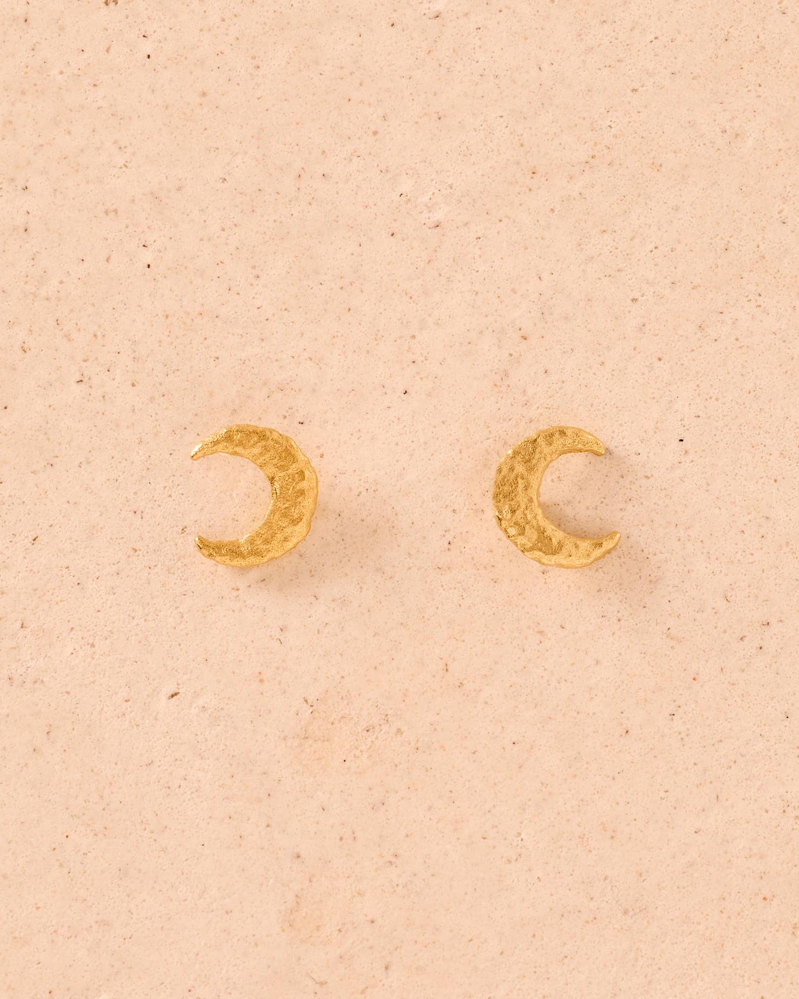 Artemis are dainty hammered crescent moon stud earrings. Let the moon’s creative energy guide you, like it does the gentle sway of the tides. Length : 8 mm Gold plated (gilding : satin) Ethically made in France