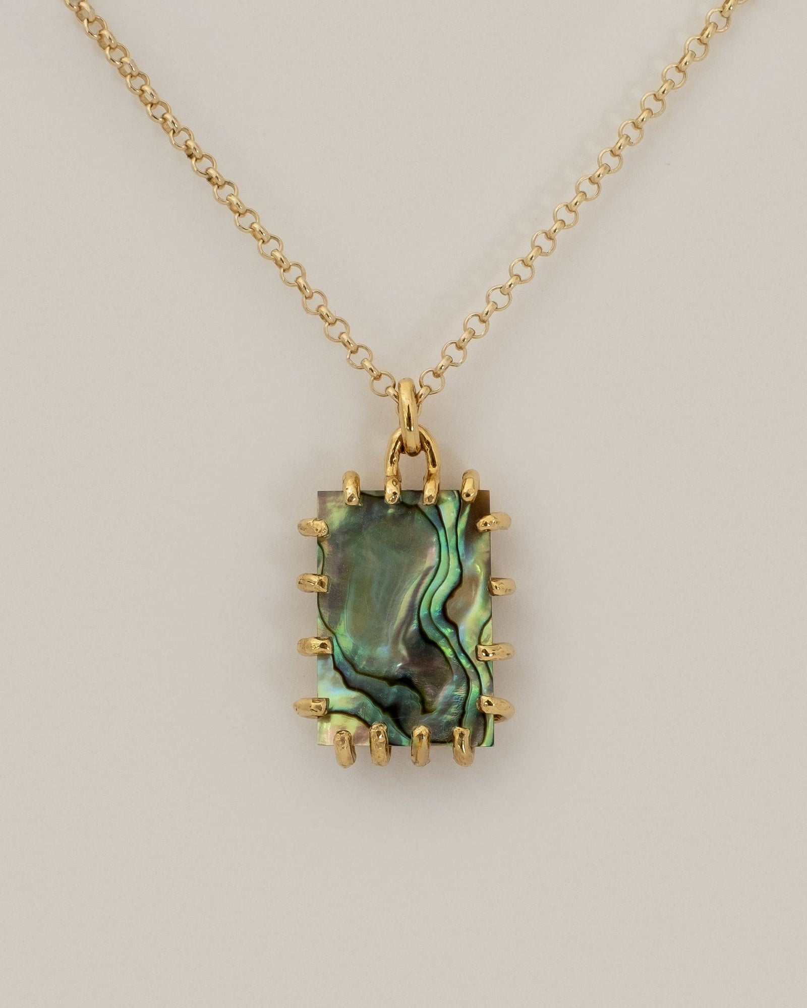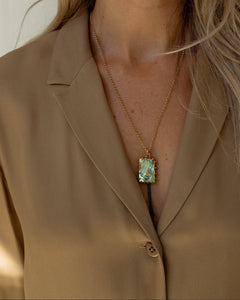 Gold filled chain with gold plated brass pendant 21” chain, 15mm x 22mm stone