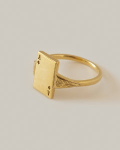 This captivating piece is more than just a band or stacked ring, it's a timeless talisman. Crafted from gold-plated brass, the ring's face measures approximately 8mm x 11mm, making it a striking yet subtle accessory. It embodies the brand's refined aesthetic, offering an effortless blend of style and sophistication. Whether worn alone or paired with other pieces, this ring adds a touch of elegance to any outfit.