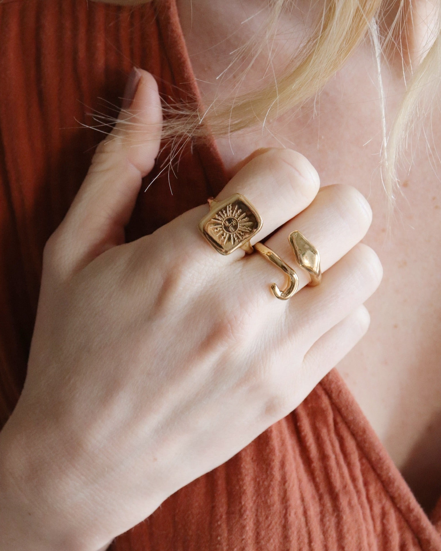 A new addition to our expanding serpent jewelry collection, we are welcoming the Serpent Guardian Wrap Ring to Dea Dia. An often maligned species, we find beauty in the powerful serpent. The shedding of the skin represents rebirth, renewal and transformation. They make the perfect totem or guardian! This serpent ring was first sculpted by hand in wax in our high desert studio (home to many snakes, the desert - not the studio!) before being cast in recycled metals in DTLA. Brass
