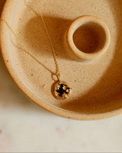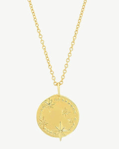This Star Disc Necklace features a finely crafted pendant etched with a constellation of 12 stars, symbolizing guidance and inspiration. The minimalist design offers a subtle yet elegant statement piece suitable for everyday wear or special occasions, providing both style and a meaningful touch to your jewelry collection.