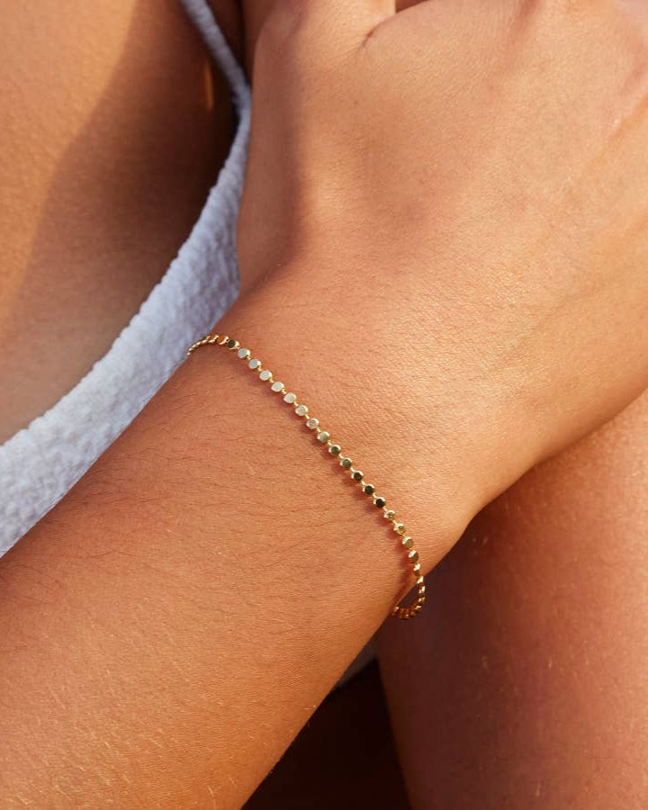 Both delicate and simple, the Anatole Bracelet is a classic that never gets old. Length : 15 cm (5.9") + 3 cm extender (1.2") Gold plated (gilding : satin) Ethically made in France
