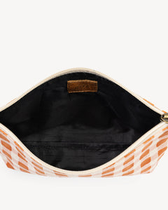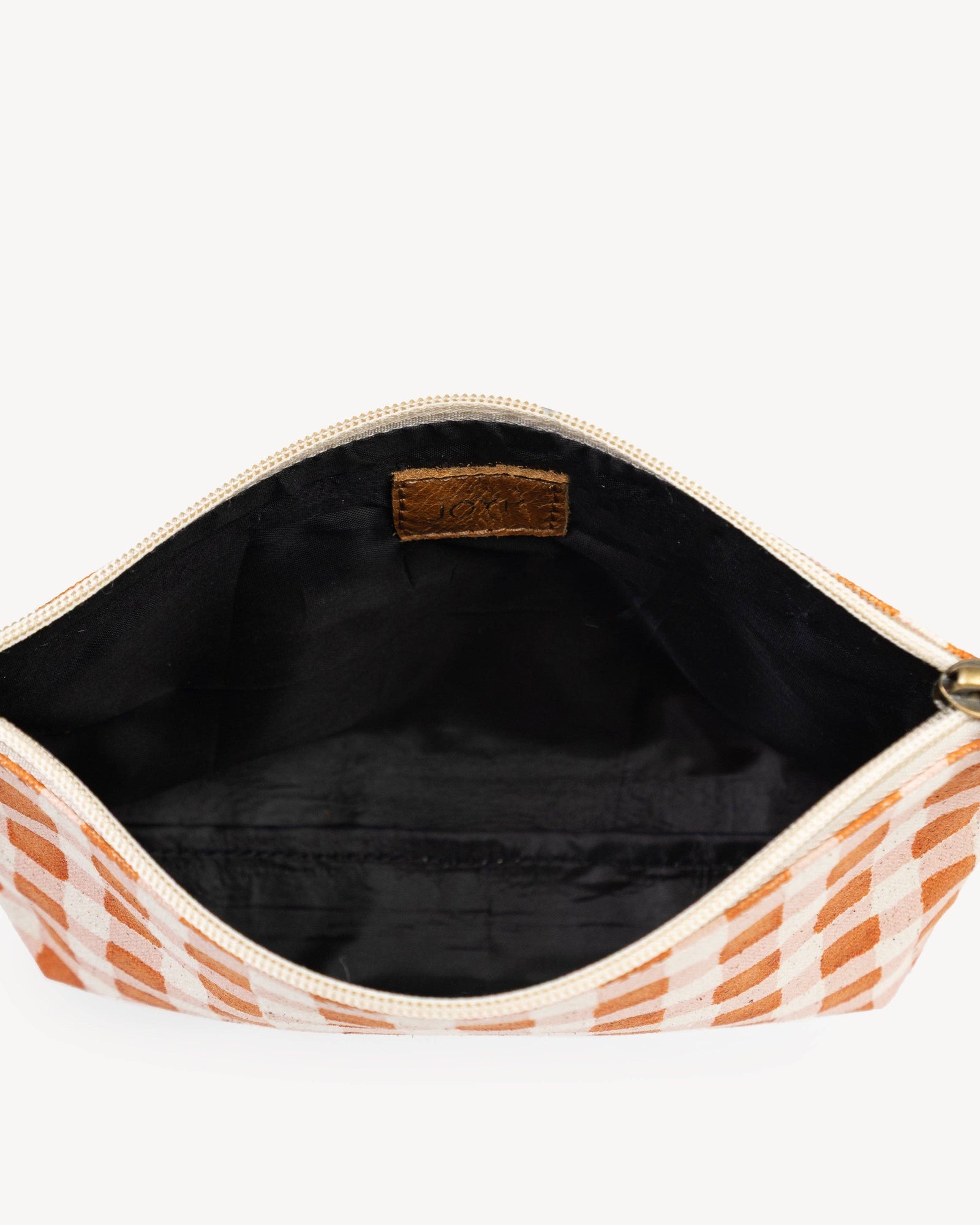Hand block printed cotton canvas meets waterproof practicality—ideal for make up and coins, earbuds and emergency snacks, or whatever small treasures accompany your day. Tuck it into any bag for instant organization, or use it to keep organized at home.