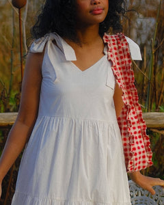 The go-to statement shoulder bag for 2025. Handcrafted from hand block printed canvas with frill detailing that reminds us of our favorite Nepali street food, Momos. Roomy enough for all your everyday essentials with zip closure and comfortable shoulder strap.