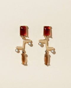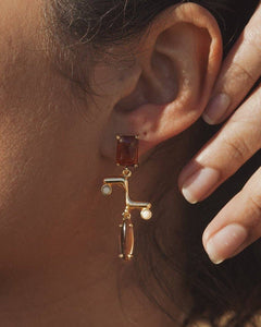 Neutral yet interesting drop earrings. Amber, tan, and ivory Czech glass cabochons delicately move with you.