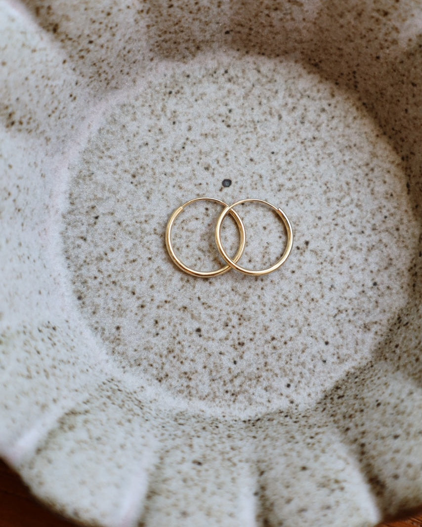 Crafted from luxurious 14k yellow gold, this Small Thread Hoop boasts a 16mm size that is feather-light and perfect for everyday wear.