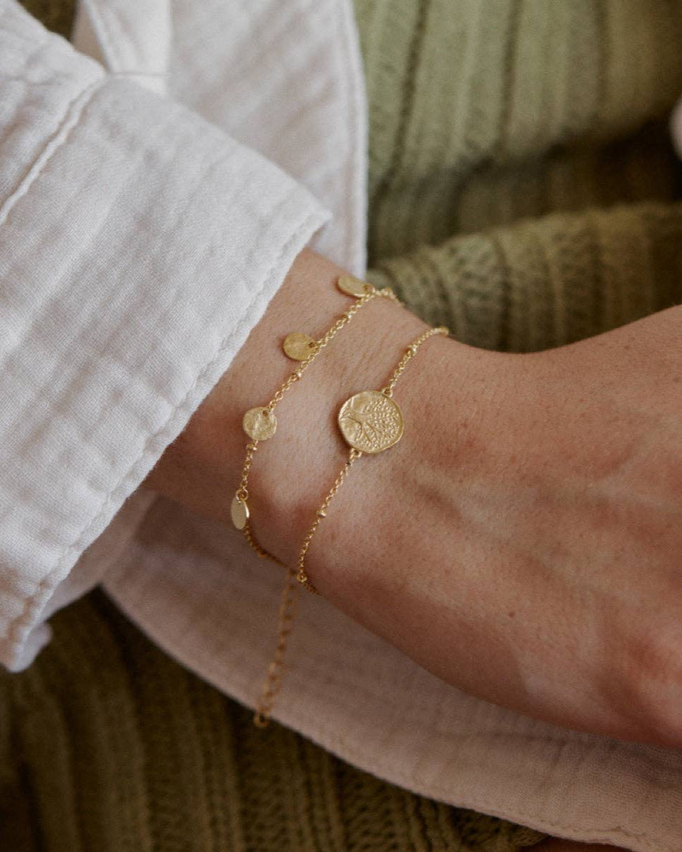Inspired by Persian culture, this specifically detailed pendant representing 5 gold circles was a symbol for purity and truth. * 24K sustainable gold plated pendants and chain (gilding : satin) * Length : 16 cm (6.3") + 3 cm extender (1.2")