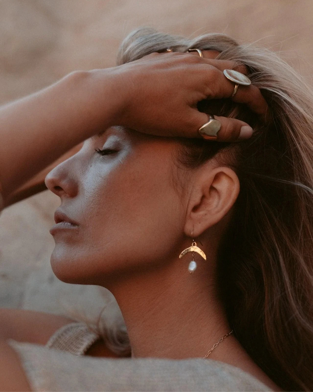 These unique Cressida Gold Pearl Moon Earrings are a sublime way to capture the power of the night sky. Hand sculpted crescent moons are adorned with drop pearl charms, they symbolize the timeless, feminine energy of the crescent moon, which has been woven into jewelry for centuries. Adorn yourself with the ultimate expression of femininity.