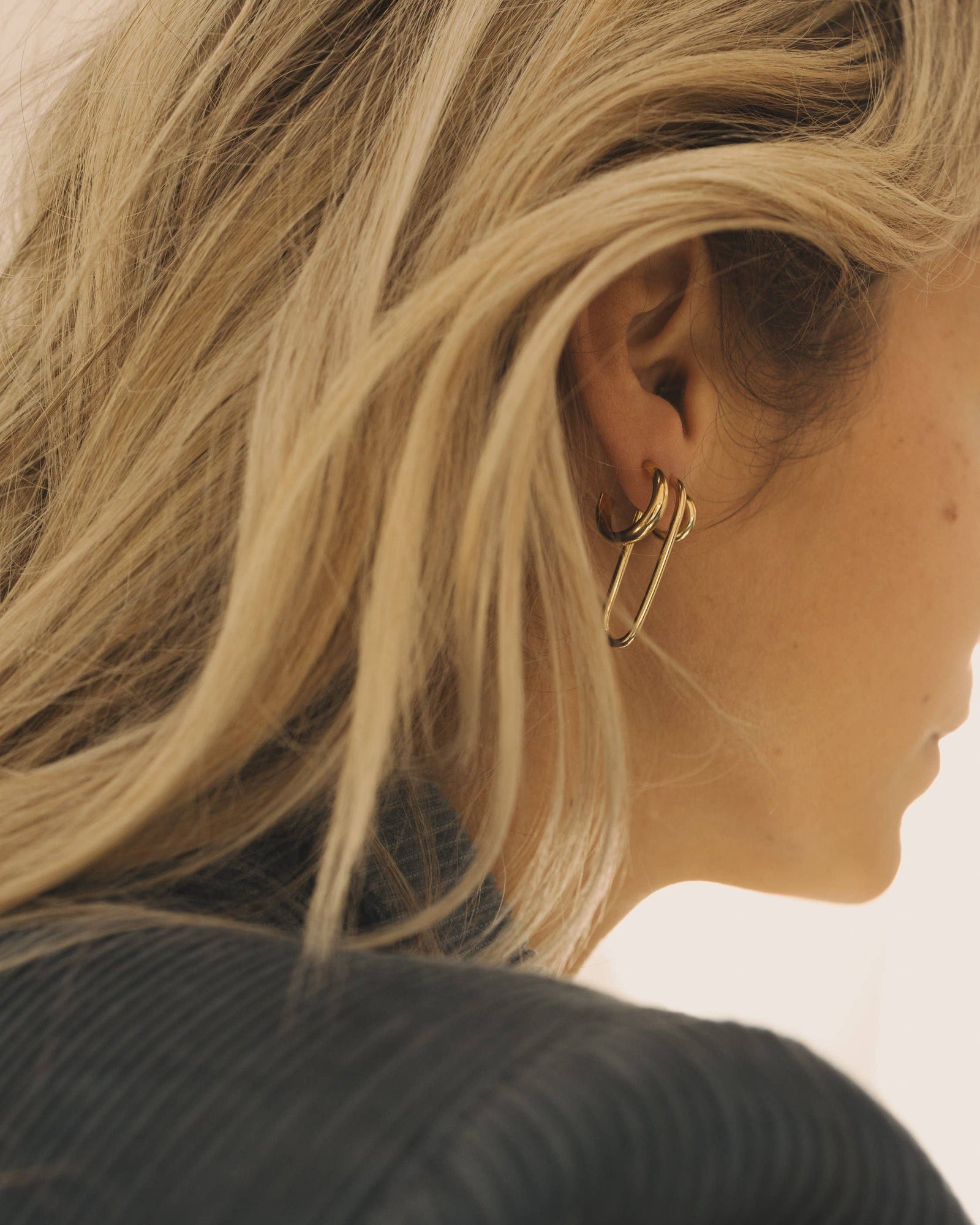 Gold plated brass earrings, ear posts are gold plated sterling silver 10mm x 32mm