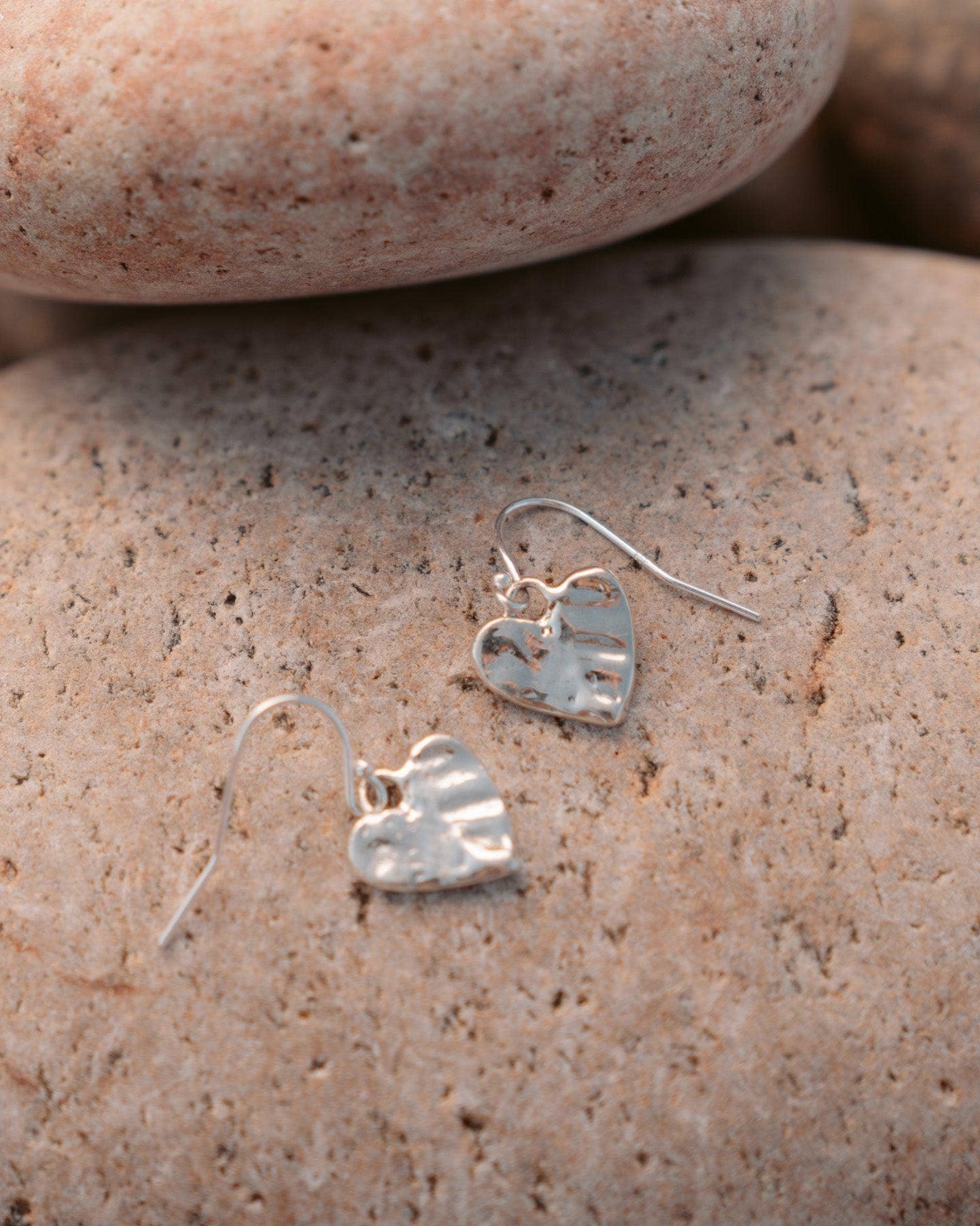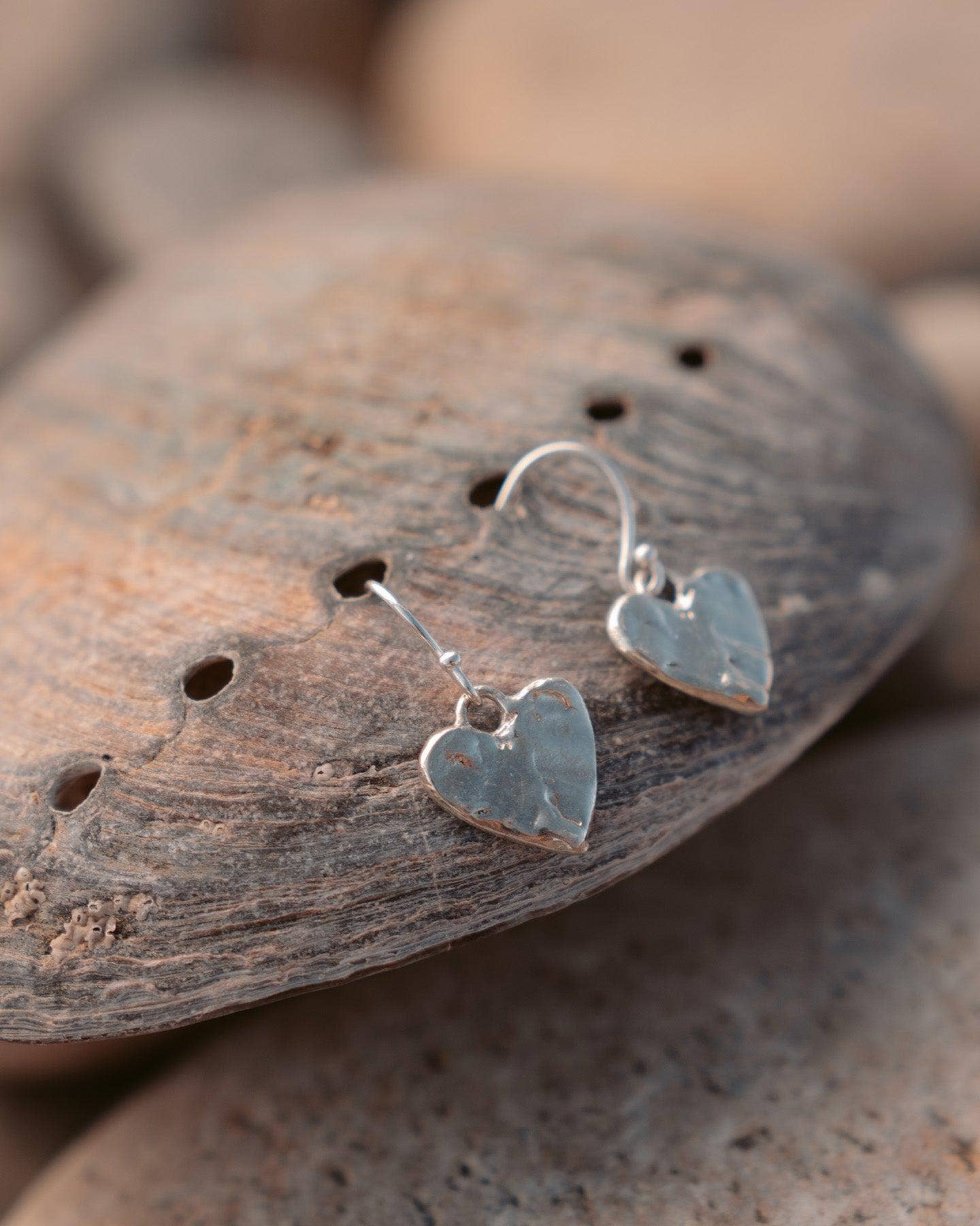 * Hand sculpted hearts cast in recycled sterling silver hung from silver ear wires