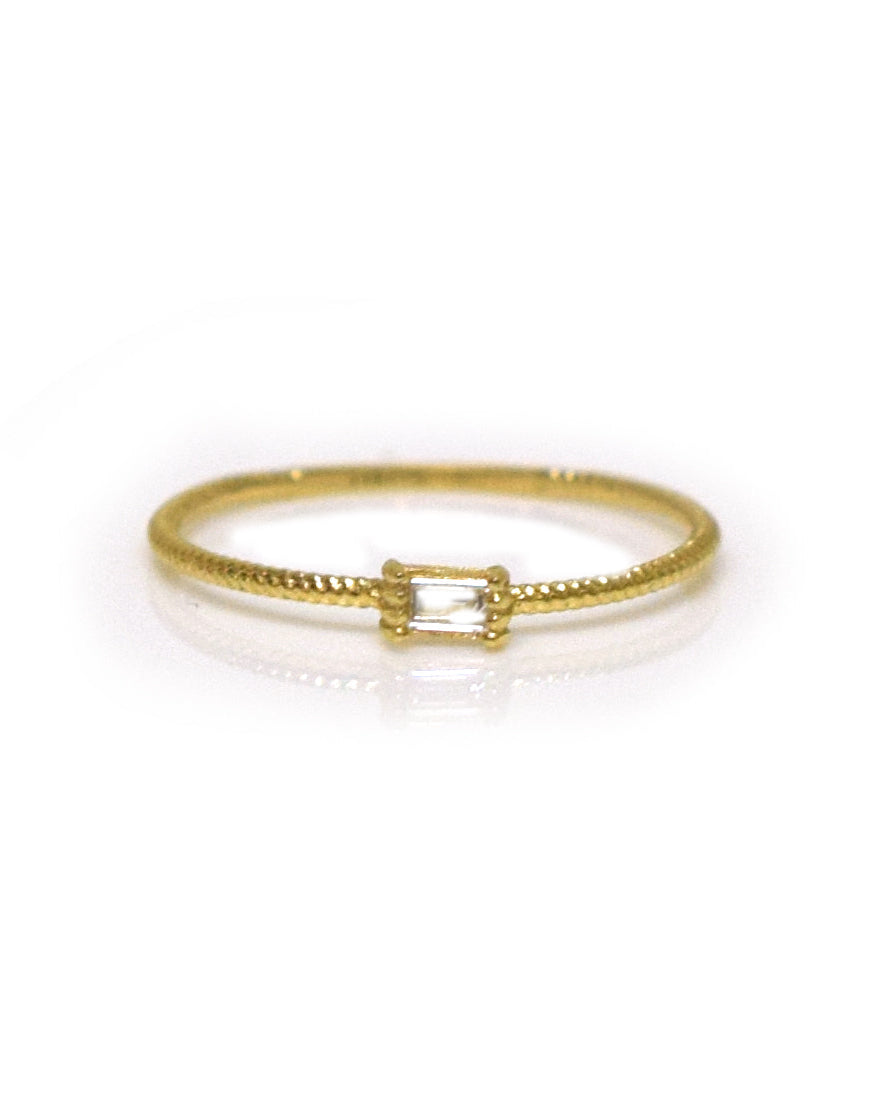 This delicately shaped baguette diamond on a perfectly twisted gold band makes for a staple in any collection. The gold diamond twisted ring's sleek and subtle design is perfect for everyday wear but is best when stacked with other pieces.
