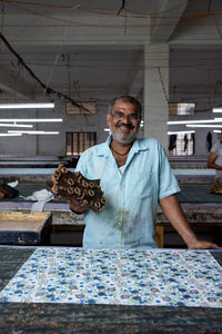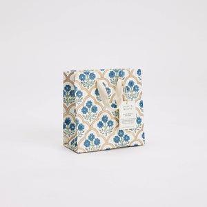 Our unique collection of hand block printed gift bags bring together craftsmanship and colour in the most beautiful way. Each one is made from strong 250gsm recycled cotton card paper in colours and designs complementing the gift wrap range. Every bag is hand block printed using traditional techniques making each piece a little work of art. Finished with soft cotton rope handles and a matching swing tag sharing the story behind the bags. Size - Small H14 X W14 X D7cm 250gsm Bag & Swing Tag Composition: 100% recycled cotton paper