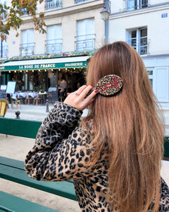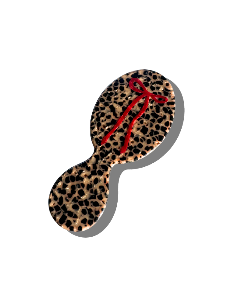 Lightweight and perfectly sized for your bag, it’s the beauty essential that goes with you—anywhere, anytime. Each brush features an original, hand-painted design created by Solar Eclipse artists. This brush features our signature Leopard Bow. It’s a bold, iconic detail that adds playful edge and personality to your everyday routine. Made with eco-friendly, vegan materials, including our signature biodegradable acetate, and packaged sustainably. Key Features Designed in NYC A thoughtfully engineered, design-forward brush that merges performance with everyday elegance. Dual-Bristle Functionality Vegan boar-like bristles distribu