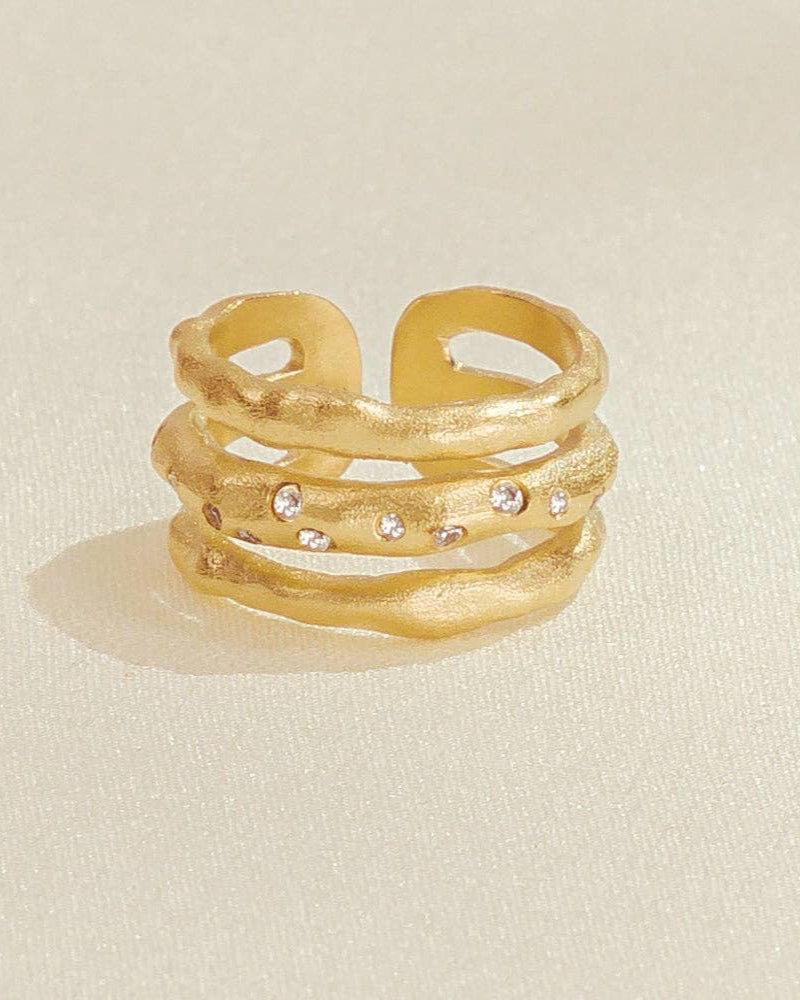 With three irregular rows, Iris is a timeless classic. The central band is adorned with white stones, for a touch of audacity and cosmic brilliance.