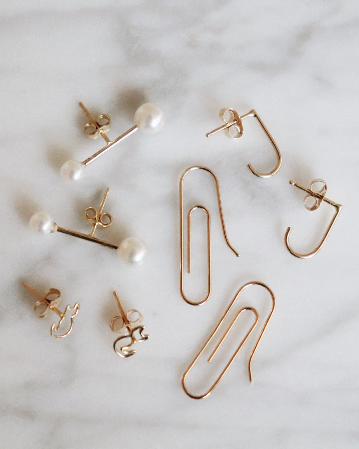 Each Majorette earring comes with 2 pearls in 2 different sizes/6mm and 3mm. Punk and elegant, a new way to wear pearls.