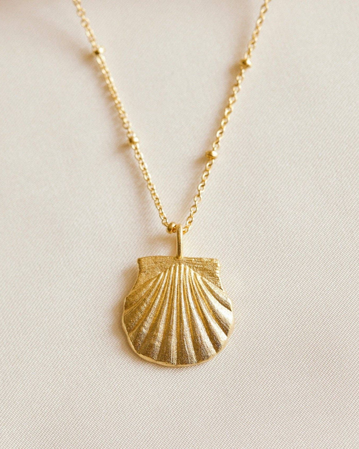 Inspiration : From the depths of Atlantis, to the Ancient Greek times when Plato was describing this magical civilization, seashells were worn to represent good well-being and high status. People decorated armours and clothing with them to show how well they were doing in life. * 24K sustainable gold plated necklace (gilding : satin) *  Length : 43 cm (16.9") + 7 cm extender (2.8")