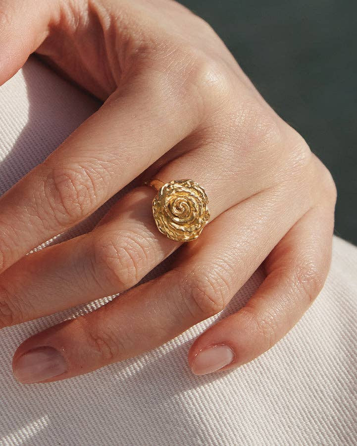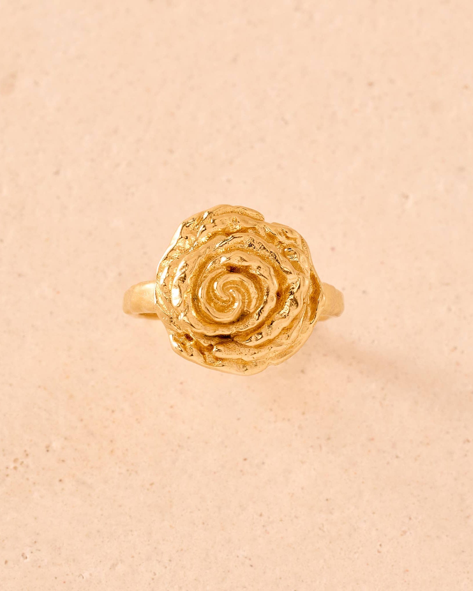 A statement rose flower with voluminous and hammered petals petals, sculpted into a timeless floral ring. Width : 16 mm (0.63") Inside diameter