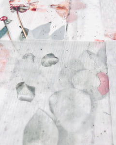 Botanical Vellum Design Papers from pressed finds This set includes 10 delicate A5 vellum sheets, held together with a minimal paper wrap made from an old receipt roll I found at a flea market. The designs are based on plants, seeds, and book pages I’ve collected and pressed by hand. They carry the aesthetic of old color copies, museum archives or analog print experiments – charmingly imperfect, delicate, and nostalgic. A quiet, versatile set for creative projects with a light and poetic touch. Perfect for collage, journaling, or paper-based art.